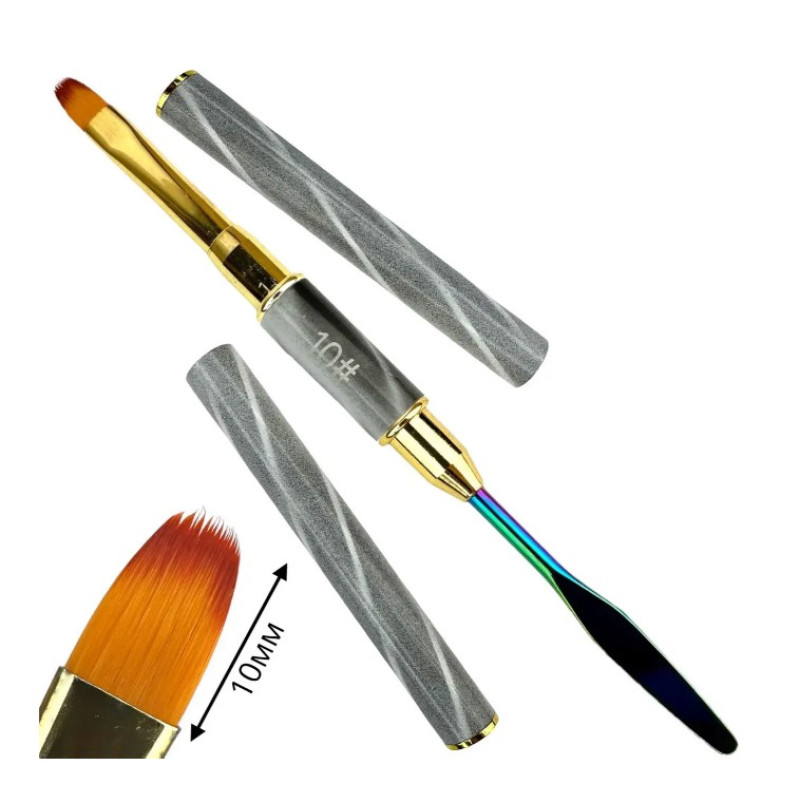 Двосторонній овальний пензель для роботи з полігелем та акрилом + шпатель "Хамелеон" (З ковпачком) 10 мм. - №10 Сірий