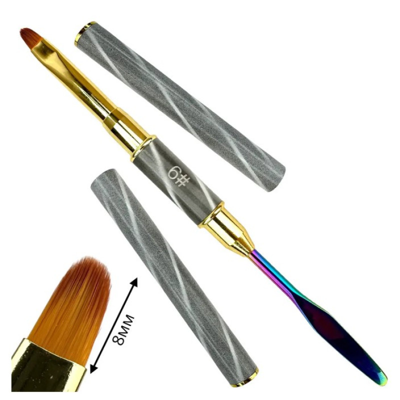 Двосторонній овальний пензель для роботи з полігелем та акрилом + шпатель "Хамелеон" (З ковпачком) 8 мм. - №6 Сірий