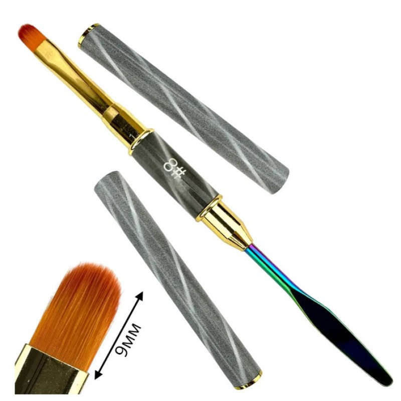 Двосторонній овальний пензель для роботи з полігелем та акрилом + шпатель "Хамелеон" (З ковпачком) 9 мм. - №8 Сірий