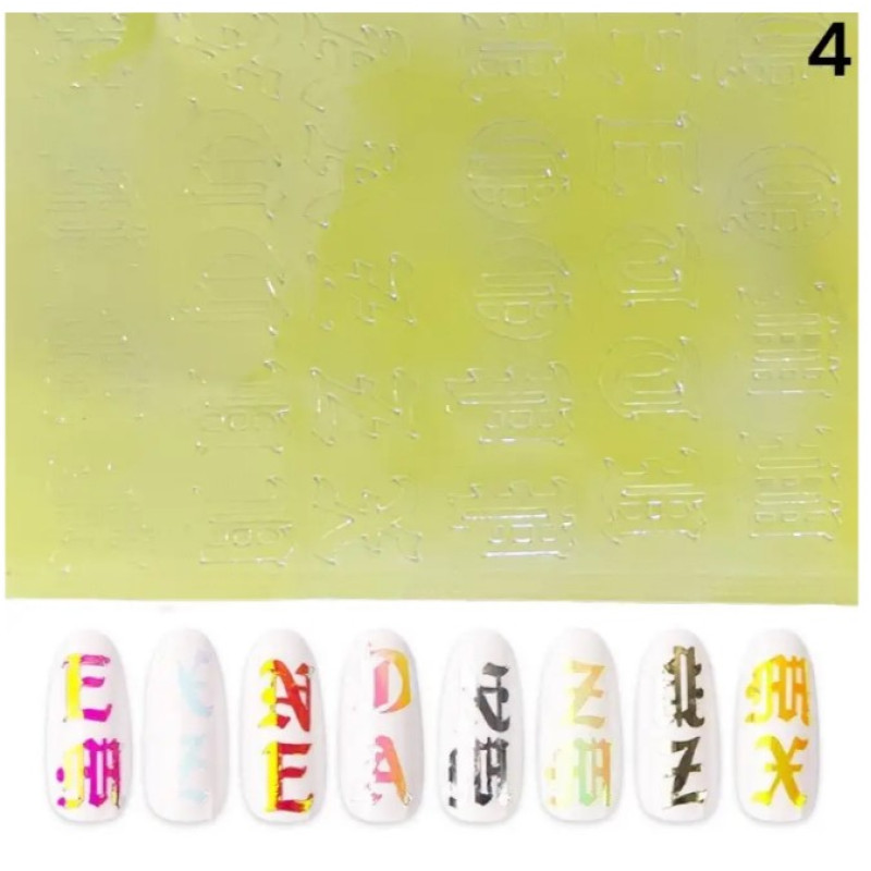 3D наклейки для нігтів «Букви» №4 (лимонна голографія)