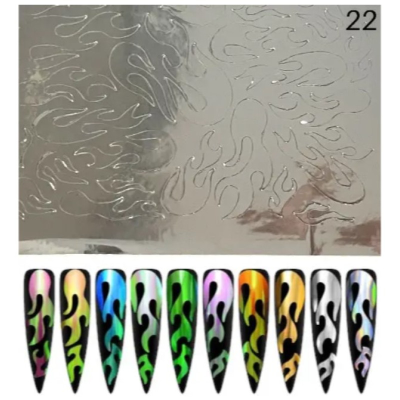 3D наклейки для нігтів «Вогонь» №22 (срібний хром)
