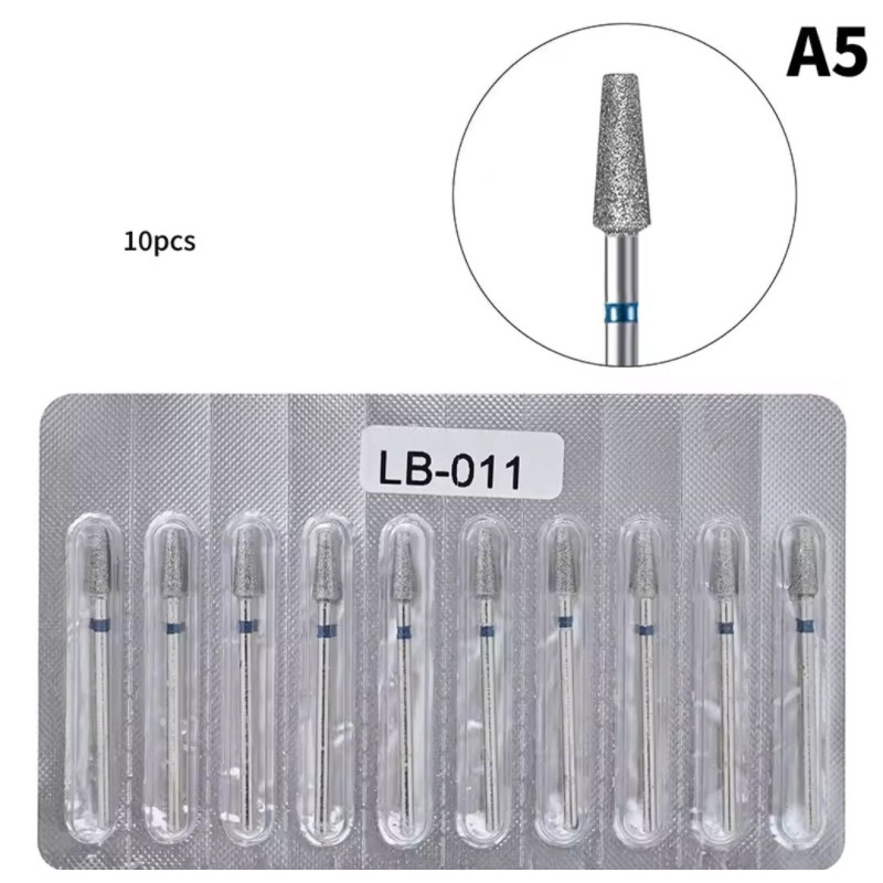 Набір алмазних фрез «Конус усечений» LB-011 (10 шт.) — синя насічка
