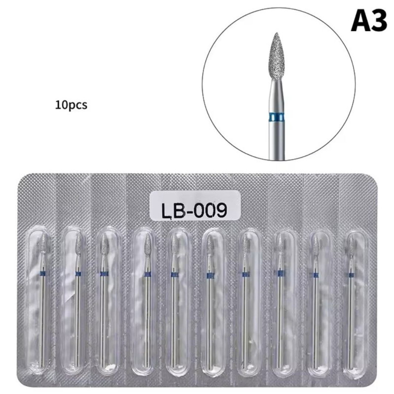 Набір алмазних фрез «Полум’я коротке» LB-009 (10 шт.) — синя насічка