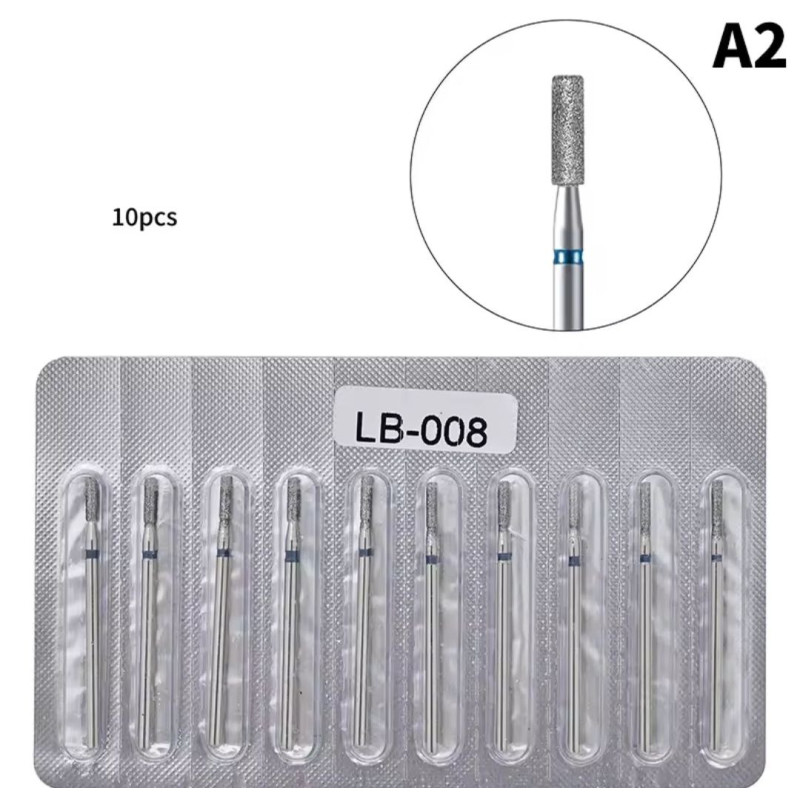 Набір алмазних насадок «Циліндр плоский» LB-008 (10 шт.) — синя насічка