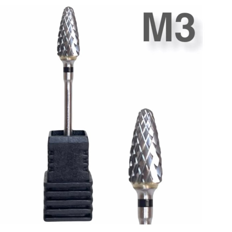 Твердосплавна фреза M3 із чорною насічкою — це найжорсткіший інструмент у лінійці, призначений для найскладніших завдань. Груба хрестоподібна нарізка дозволяє миттєво знімати товсті шари штучного матеріалу (акрил, гель), працювати з потовщеною нігтьовою пластиною та ефективно видаляти ороговілості в педикюрі. Форма гострого конуса забезпечує точність при корекції та обробці важкодоступних місць. Високоміцний сплав гарантує стійкість до зношування та перегріву навіть при високих обертах фрезера.