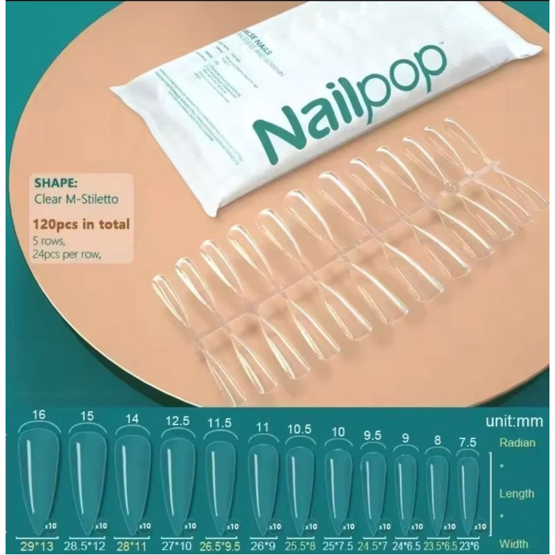 Елегантний стилет середньої довжини — тепер за лічені хвилини! Професійні гелеві тіпси Nailpop форми M-Stiletto (середній стилет) створені для швидкого та якісного нарощування. Завдяки ідеальній архітектурі, вони мають тонкий еластичний край біля кутикули для непомітного переходу та посилений вільний край для максимальної міцності. Ці тіпси виготовлені з інноваційного софт-гелю, що дозволяє їм ідеально підлаштовуватися під форму натурального нігтя. Вони не потребують тривалого обпилювання та легко розчиняються ремувером. Прозора основа (Clear) є універсальною для будь-якого покриття — від витонченого нюду до яскравих дизайнів.