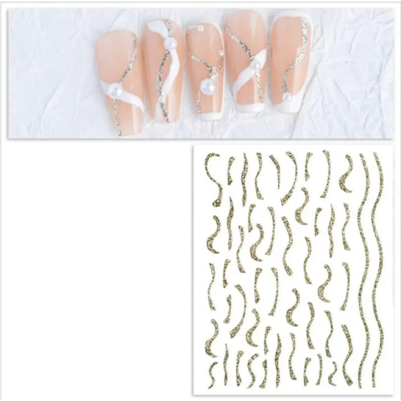 наклейки для нігтів, золото, стрічки, хвилі, лінії, декор, №9