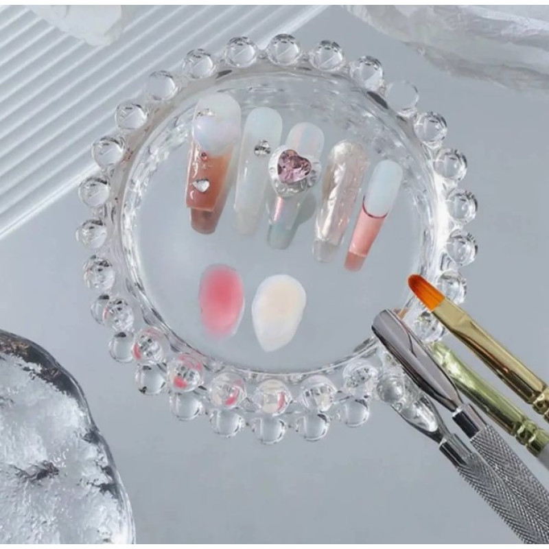 Елегантна кругла палітра діаметром 9 см — незамінний аксесуар для майстрів манікюру, візажистів та лешмейкерів. Виготовлена з якісного прозорого матеріалу з декоративним облямуванням, вона дозволяє зручно змішувати гель-лаки, фарби, пігменти або косметичні основи. Завдяки гладкій поверхні палітра легко очищується та дезінфікується, не вступає в реакцію з хімічними речовинами. Стильний дизайн не лише полегшує роботу, а й чудово виглядає на фото під час створення контенту для портфоліо.