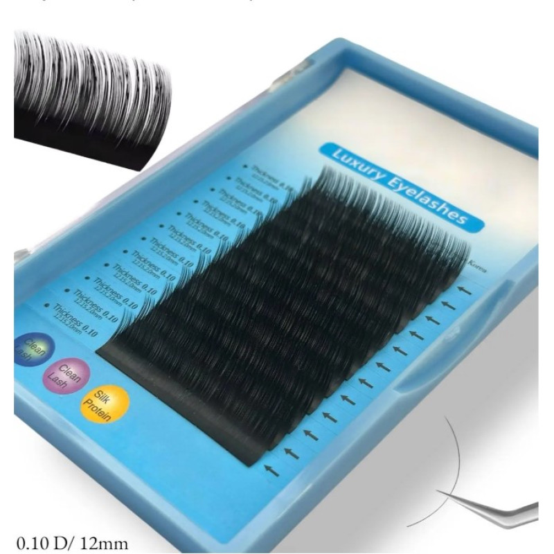 Вії Luxury Eyelashes — вигин D, товщина 0.10 мм, довжина 12 мм (12 ліній)