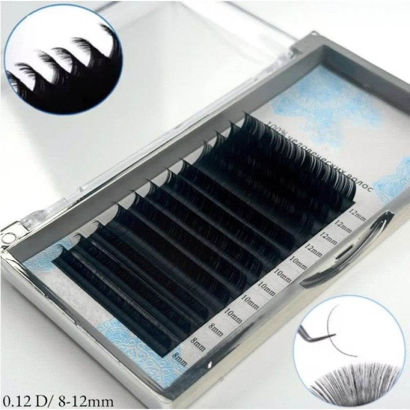 Luxury Eyelashes, вигин D, товщина 0.12, МІКС 8-12 мм, вії на стрічці, 12 ліній, професійне нарощування, набір вій