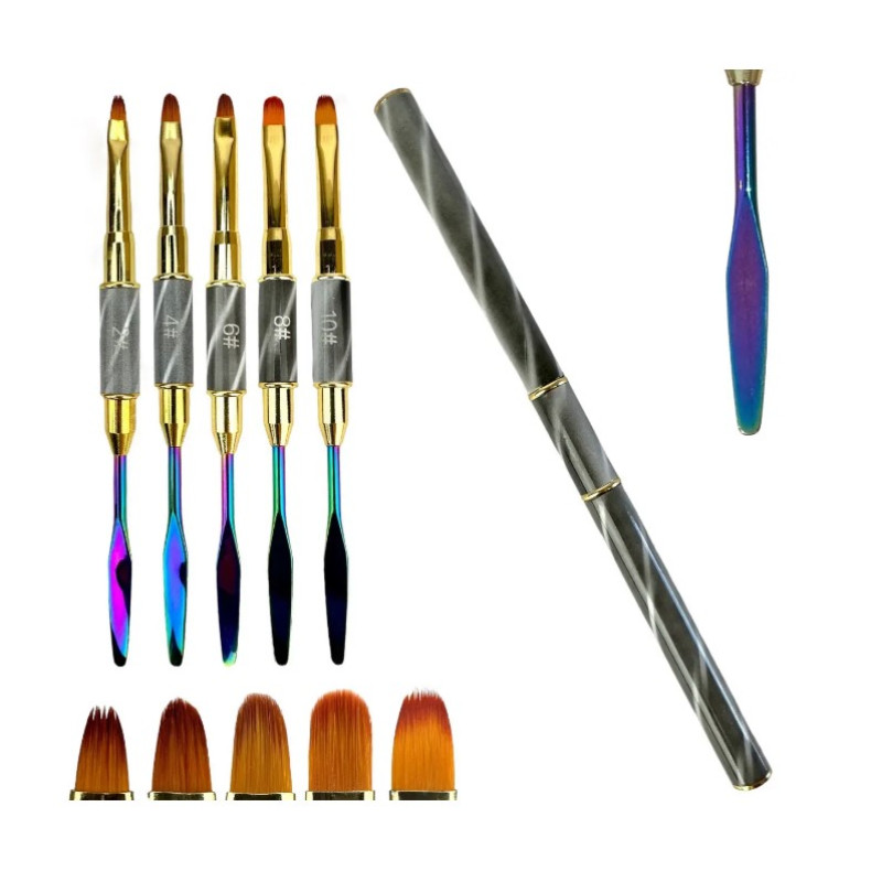 Двосторонній овальний пензель для роботи з полігелем та акрилом + шпатель "Хамелеон" (З ковпачком) 6 мм. - №2 Сірий