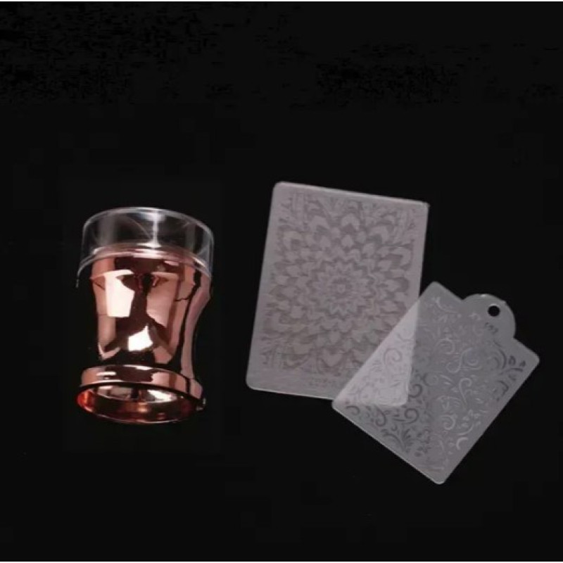 Професійний набір для швидкого нейл-дизайну. Великий круглий штамп у металевому бронзовому корпусі забезпечує максимальний комфорт при перенесенні малюнків на нігті будь-якої довжини. М'яка силіконова подушечка відмінно захоплює пігмент і дозволяє точно позиціонувати візерунок. У комплекті йдуть дві металеві пластини з актуальними принтами, що робить набір готовим рішенням для творчості.
