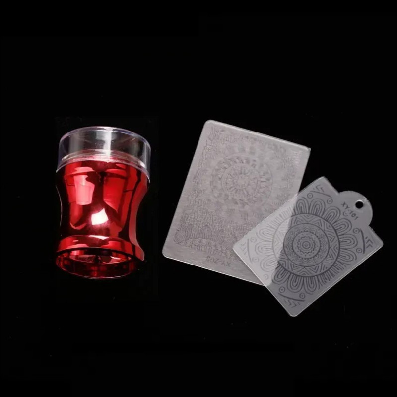 Яскравий акцент вашого робочого столу та ідеальний результат. Цей професійний набір поєднує в собі функціональність великого штампа та готові рішення для дизайну у вигляді двох пластин. Насичений червоний корпус виконаний з міцного матеріалу, а прозора силіконова подушечка дозволяє ювелірно переносити візерунки на нігтьову пластину. Набір ідеально підходить для швидкого створення складних принтів у салонних та домашніх умовах.
